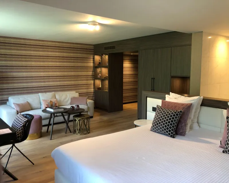 Heerlijk genieten en baden in luxe in onze vernieuwde Empire Suite. Deze suite is smaakvol ingericht met een kingsize bed, gezellige zithoek, bureau en een open badkamer voorzien van douche, sauna en een groot ligbad. Verder is ook een TV, telefoon, kluis, balkon aanwezig.