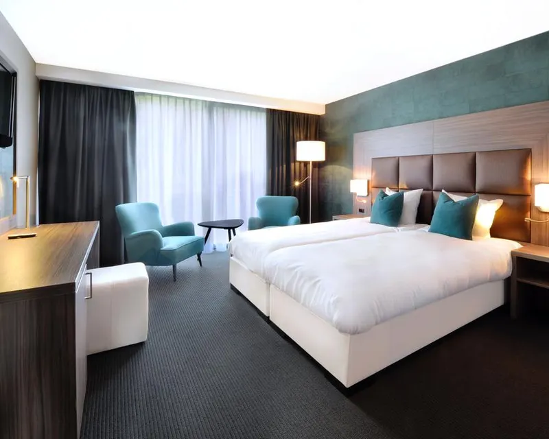 Faciliteiten: Flatscreen televisie, airconditioning, bureau, zithoek, koffie en thee faciliteiten, telefoon, minibar en kluisje.